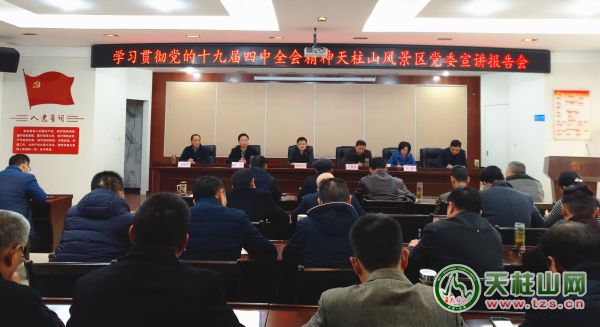 为深入学习贯彻党的十九届四中全会精神,12月13日下午,天柱山风景区党委举行学习贯彻党的十九届四中全会精神天柱山风景区党委宣讲报告会。市委常委、天管会副主任涂高生作宣讲报告,风景区纪委书记江霞主持报告会,管委会领导班子成员,管委会机关全体干部职工,度假区管委会机关全体干部职工,各党支部主要负责人,旅游公司班子成员、公司下属二级机构及经营单位主要负责人,近五年内退休的老同志,已退休的副县级老同志参加会议。