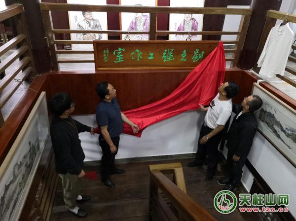 最后,在全体嘉宾的共同见证下,市委常委、天柱山管委会副主任涂高生、潜山市文联主席韩久安、著名画家刘克强、天柱山书画院执行院长何承熙共同为“刘克强工作室”揭牌。