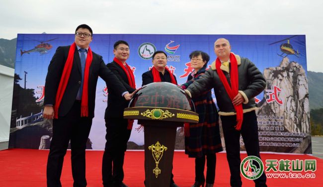 2019年1月25日上午,“空中看天柱”天柱山低空飞行旅游开航仪式在茶庄P1停车场(汉驰航空飞行基地)举办。仪式由潜山市人民政府、天柱山管理委员会、潜山市旅发委和国家体育总局航空运动营地指导,安徽天柱山旅游发展有限公司主办,汉弛通用航空股份有限公司承办。潜山市委常委、天柱山管委会主任涂高生,潜山人民政府副市长蔡婷婷,国家体育总局航空运动营地标准修订专家委会委员何驰,汉驰通用航空股份有限公司董事长涂枫,汉驰通用航空航空俱东部总经理查雄风等嘉宾共同启动开航仪式。市文化委、市旅发委、招商局、天柱山镇、天管会等单位领导和主要负责人;项目建设合作运营机构、新闻媒体记者和现场旅客等近200人共同参与开航仪式和首航试飞活动。