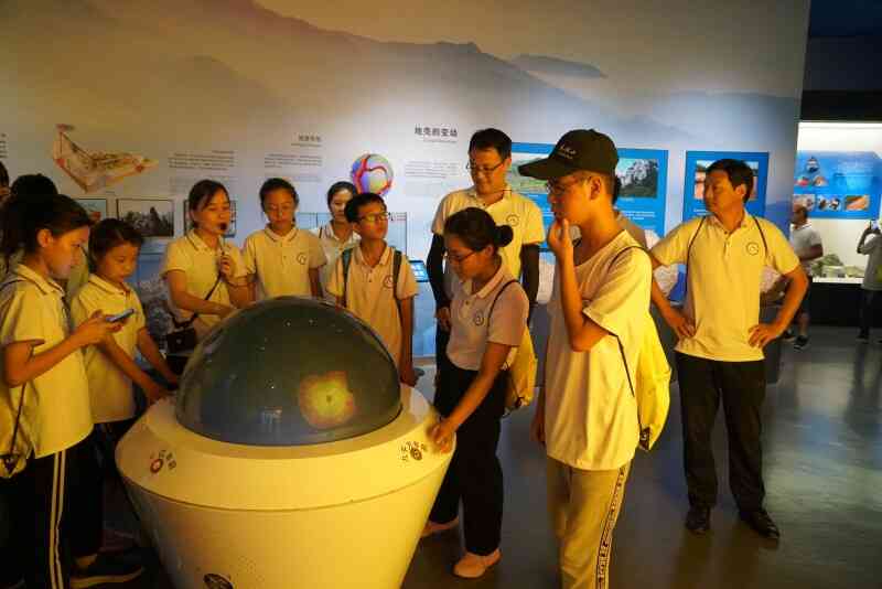 营员们在这里不仅观赏了天柱山地质景观,体验了天柱山地区丰富的历史文化内涵,还开启“地心”游历模式,感受18亿年以来,天柱山“石破天惊”“上天入地”的地质演化历程。丰富的岩石矿物标本、动植物标本和古生物化石标本,让营员们流连忘返,意犹未尽。