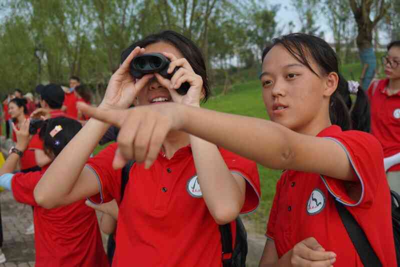 天柱山森林公园拥有独特的天然优势和丰富的动植物资源,原生态的森林体验路径将各个形态的森林体验进行有机的衔接,给予营员们亲切自然的生态教育环境。在天柱山管委会金先来高级工程师的耐心讲解下,营员们知道了朵椒和楤木的异同,还对各种植物叶片形态有了新的认识。穿梭在森林小径中,营员们无不赞叹着天柱山丰富的植物资源。潜水河,潜山的母亲河,属大别山水土保持生态功能区,也是国家湿地公园(试点)。在这里,营员们在安庆师范大学三位生态教育专业学生的带领下,借助望远镜和摄影机等专业观鸟设备观察认识了白鹭、红嘴蓝鹊等10余种留鸟和夏候鸟。开展自然教育活动,旨在传播环境保护和森林文化知识,培养营员们热爱自然、保护生态的意识,牢固树立人与自然和谐相处、生态平衡发展等理念。