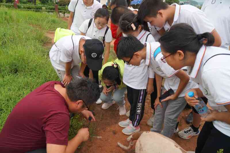 潜山产出众多早中古新世脊椎动物化石。它们为研究啮齿类、兔形类动物、鸟类等的演化辐射提供了重要的化石证据。在黄铺村徐大屋化石点,营员们在地质公园工作人员的讲解下,观察了典型的复原模型,了解了东方晓鼠、安徽模鼠兔的意义,还亲自参与寻找化石。韩长冲是大别造山带中研究超高压变质岩的经典露头之一,国内外众多学者在这里做了很多研究,取得了许多世界瞩目的研究成果。在这里,吴维平教授对大理岩、硬玉石英岩、榴辉岩的类型、结构构造、成因机制以及整个大别山的地质演化历史进行了细致全面的讲解。