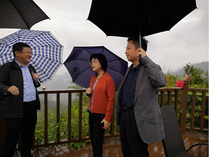 10月4日,省文化和旅游厅袁华厅长采取“四不两直”方式,轻车简从冒雨来天柱山检查指导工作。