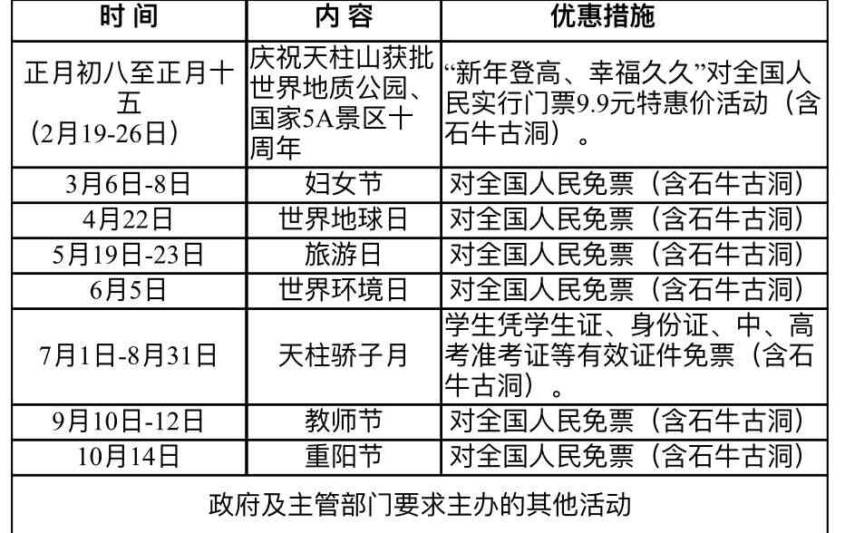 1、专列人数达到200人以上、专船人数达到200人以上、包机人数达到100人以上,门票按全价票订票,结算按20元/人,且包含石牛古洞。