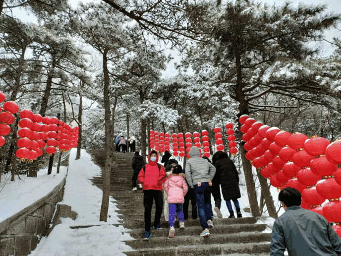 辞旧迎新,正月初一,不少人选择走出家门,去景区游玩行大运。天柱山景区为了给游客提供便利安全的服务,特地在除夕前加班加点清除路上积雪。天柱山上的大红灯笼,为一年一度的新春佳节,增添了浓郁的欢乐气氛。截止下午四时,天柱山游客量1.08万人次。