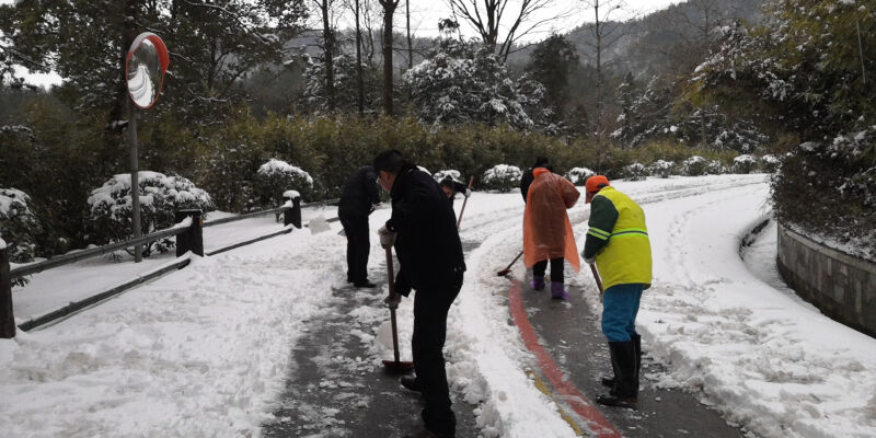 2月7日、8日,在风景区纪检监察工委书记江霞和旅游公司领导班子的带领下,天柱山人化身铲雪小分队,在城区包保网格南岳路段、景区通景公路、索道公司、天柱山庄等经营场所同时开展冰雪大作战。