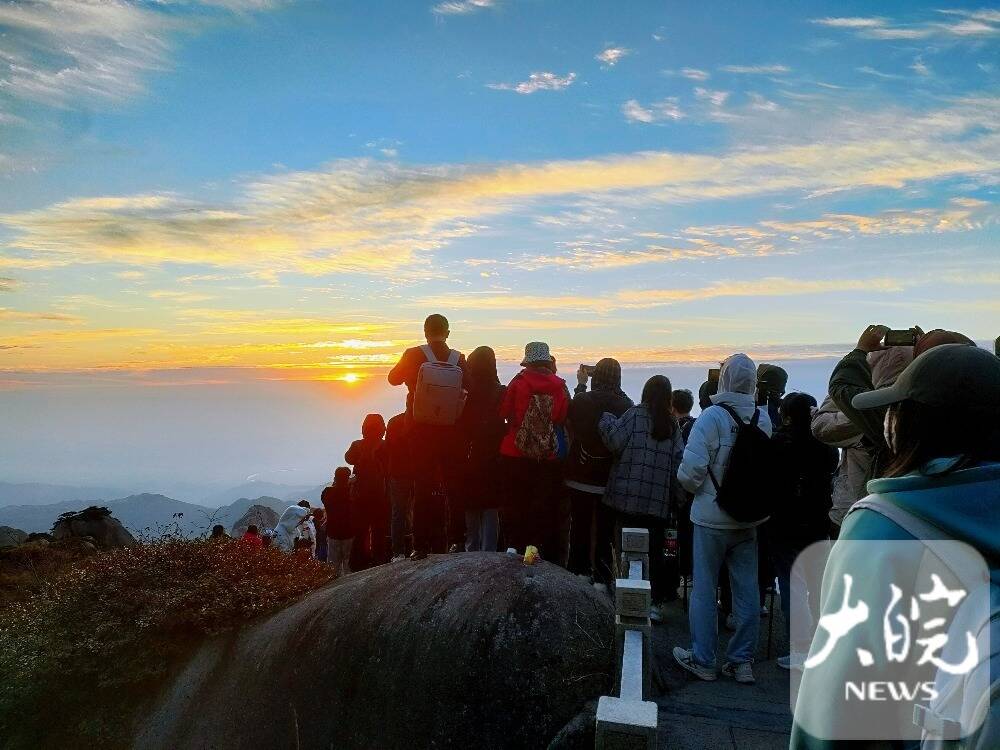 大皖新闻讯 夜爬天柱山 ,一览旭日升。11月5日,天柱山景区邀请作家协会会员、摄影协会会员、新媒体达人,共同参与线下夜爬活动。11月6日清晨,35位夜爬天柱山体验人员目睹了旭日东升时天柱山的绝美景色。