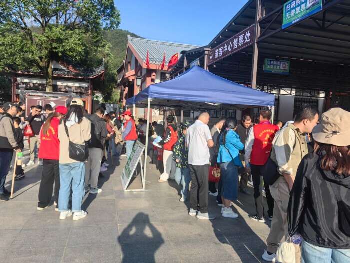“一天下来,好多志愿者腿都站酸了,嗓子都哑了。”景区负责人表示,“游客不下山,我们不下班。景区党员、干部、职工全员志愿服务一线,引导游客有序进山游览,或分流山下车辆有序上山,服务成效显然,获得游客一致好评。”