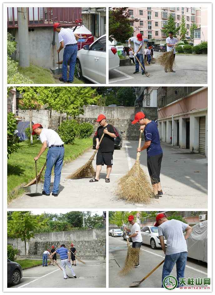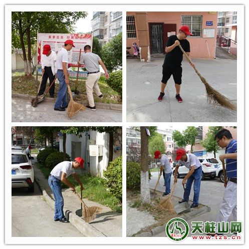 志愿者们统一佩戴小红帽,党员佩戴党徽,分成两组,一组在机关大院内进行院内环境维护,一组深入幸福佳苑小区,协助做好区荣区貌、环境卫生、车辆停放等工作。