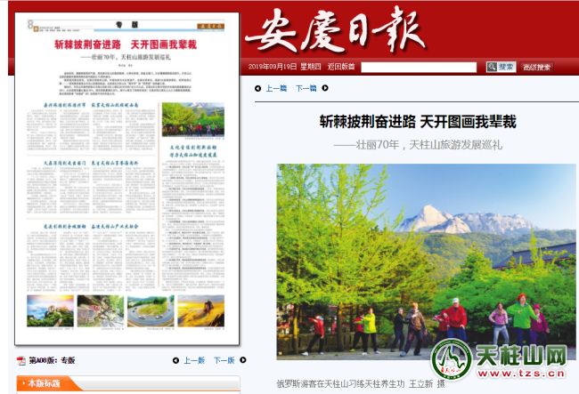 金秋的风,满载着收获的气息,亲抚着天柱山的满目锦绣。从养在深闺,到走出国门,从步履蹒跚到超迈前行,天柱山以全新的面貌和累累硕果向新中国成立70周年献礼!