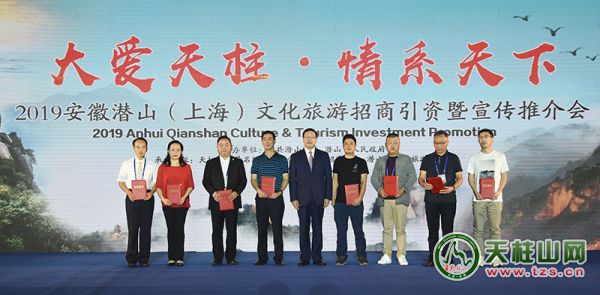 9月21日上午,由中共潜山市委、潜山市人民政府主办,天柱山管委会、市招商中心、市文化旅游体育局承办的“2019安徽潜山(上海)文化旅游招商引资暨宣传推介会”在上海长宁区举行。潜山市委副书记、市长梅耐雪致辞,市委常委、天柱山风景区管委会副主任涂高生和副市长蔡婷婷分别作天柱山旅游、文化旅游招商引资暨全域旅游宣传推介,上海恒实投资集团有限公司、上海安庆经济文化促进会副会长聂建明讲话。同时,举行了文化旅游重点项目签约仪式,颁发了天柱山旅游推广大使证书。应邀客商代表、上海周边旅行商、媒体嘉宾等200余人参加旅游宣传推介活动。