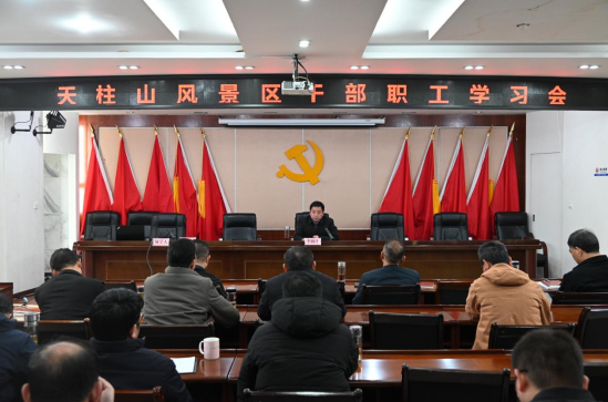 3月6日,天柱山风景区召开干部职工学习会,天柱山风景区党委委员、管委会副主任李桃生主持会议会议并讲话。 会议首先传达学习树立和践行正确政绩观学习教育有关文件和会议精神;解读2026年度天柱山风景区门票相关政策。随后,会议解读风景区年度宣传...